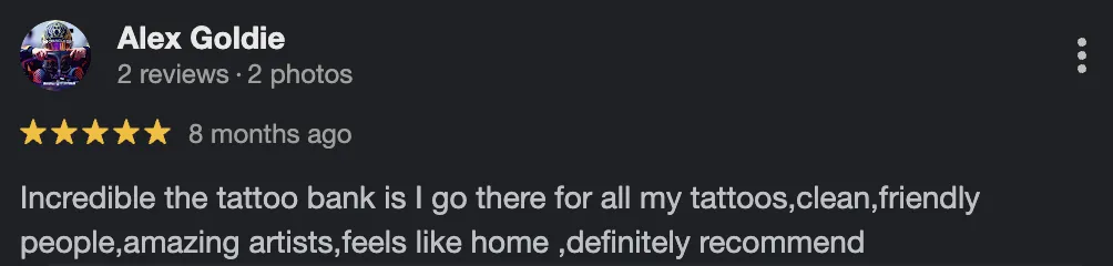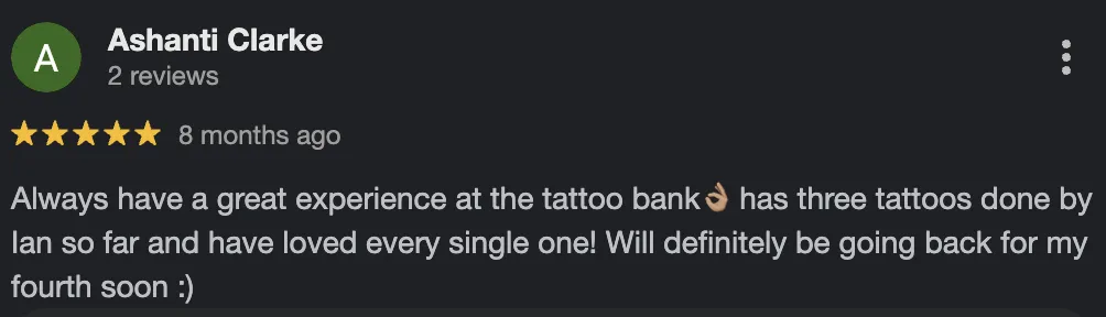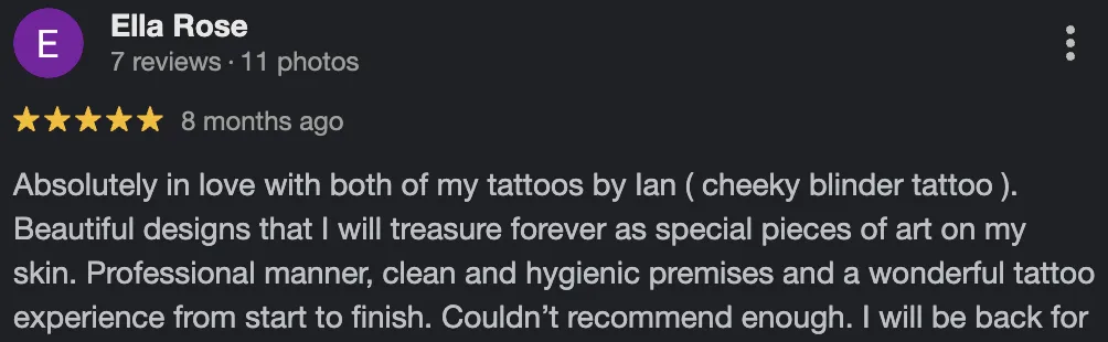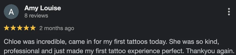 You will meet one of our talented artists and they will explain how we operate, how the tattoo process works, and how long your tattoo is expected to take to complete.